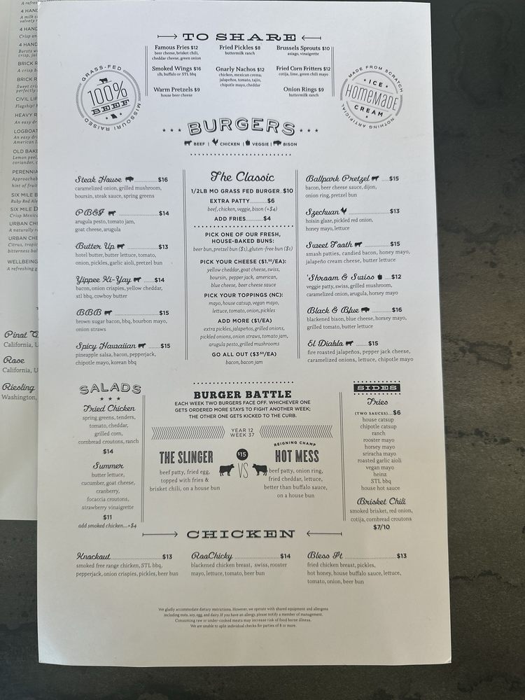 Baileys’ Range is a vibrant spot in St. Louis known for its creative burgers and tasty boozy lemonades. Located at 4175 Shaw Blvd, this restaurant offers a variety of options including ice cream, beer, and burgers. With a welcoming, trendy atmosphere, Baileys’ Range is perfect for both family gatherings and casual hangouts with friends. Customers rave about the flavorful dishes, like the PB&J burger and the chili, which are guaranteed to satisfy your taste buds. The restaurant also has impressive happy hour specials and a wide selection of beers on tap. The outdoor seating area is ideal for summertime enjoyment, and the efficient and friendly service ensures a pleasant dining experience. Don't miss out on this gem for a memorable meal in St. Louis.