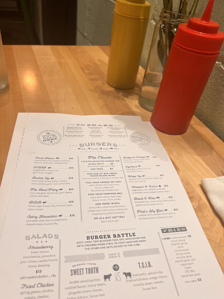 Beef patty, Pepper Jack, Pineapple salsa, Korean bbq, Bacon, Chipotle Mayo, and a Beer Bun