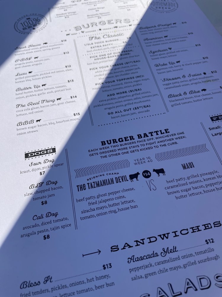 beef, hotel butter, butter lettuce, tomato, onion, pickles, garlic aioli, pretzel bun